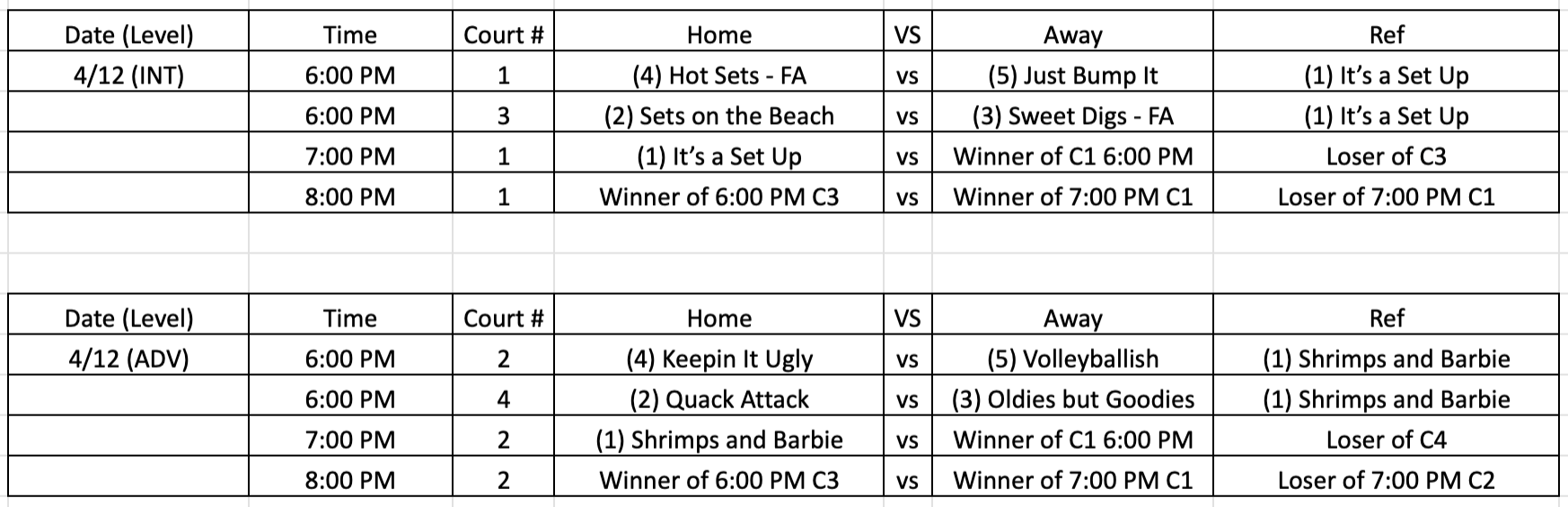 2026 Sunday Sand 4’s Spring Playoff Schedule